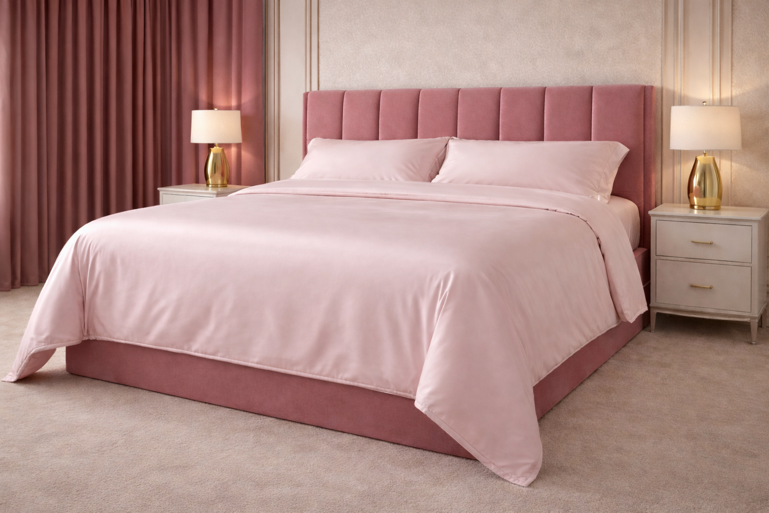 In percalle di puro cotone in tinta unita rosa cipria.